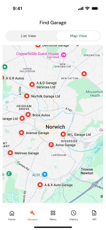 Switch to map view to get a visual overview of MOT stations in your area. Tap any pin to see details and get directions without leaving the app.